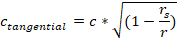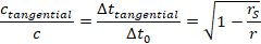 Aus Sicht eines entfernten Beobachters wird die Lichtgeschwindigkeit nahe einer großen Masse geringer. Es wird unterschieden zwischen der tangentialen Geschwindigkeit (Kreisbahn um die Masse) und der radialen Geschwindigkeit (in Richtung der Masse).
