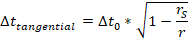 Bei der tangentialen Bewegung bleibt die Raumkrümmung konstant, da sich der Abstand zur Masse nicht verändert. Je stärker die Raumkrümmung ist, umso langsamer vergeht die Zeit[4].