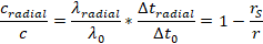 Bei der radialen Bewegung muss die Zeitveränderung und die Längenkontraktion[5] berücksichtigt werden.